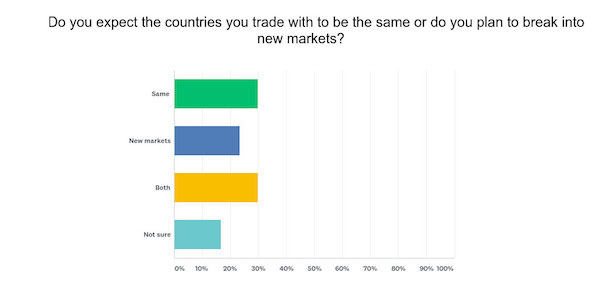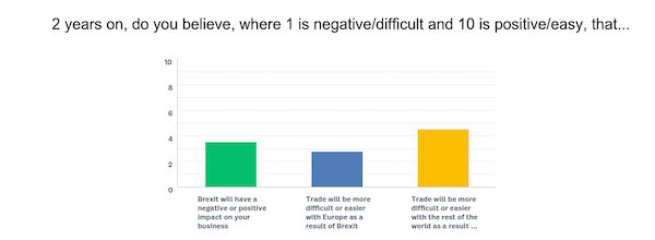 32.03% said that Brexit was going to have the utmost negative impact - i.e. 1 out of 10, where 10 is positive - with 61.31% scoring 1-3 out of 10. This figure was 39.84% for trade with the EU and 37.89% for trade beyond the EU, but there was more positivity for trade beyond the EU with 29.3% scoring a 6 or more out of 10.