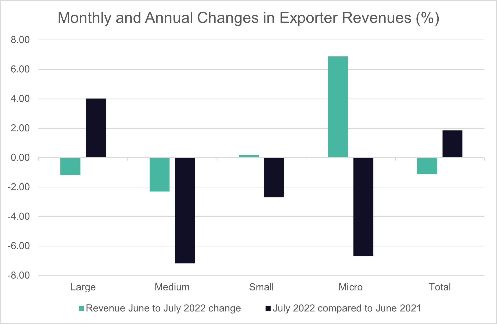 Figure 3: Exporter revenues over time, July 2020-July 2022