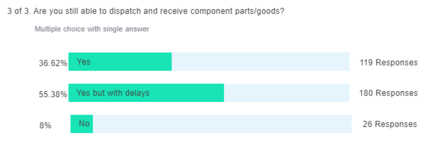 Business people attending the webinar also reported delays in despatching or receiving component parts or goods.