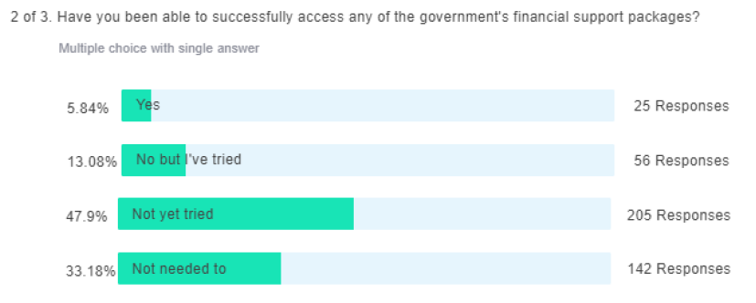 Only 5.84% have needed the support already and successfully applied, while 13% said they have tried to access it but have not been successful.