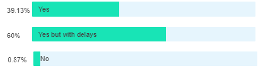 Nearly two-thirds (60%) of delegates polled during the webinar said they had experienced delays, but they were still managing to dispatch or receive components or goods.