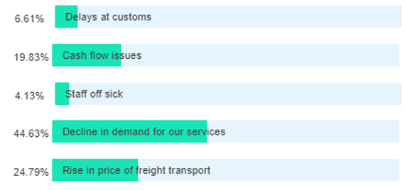 This was followed by increased prices of freight (25%) and cash flow issues (20%).